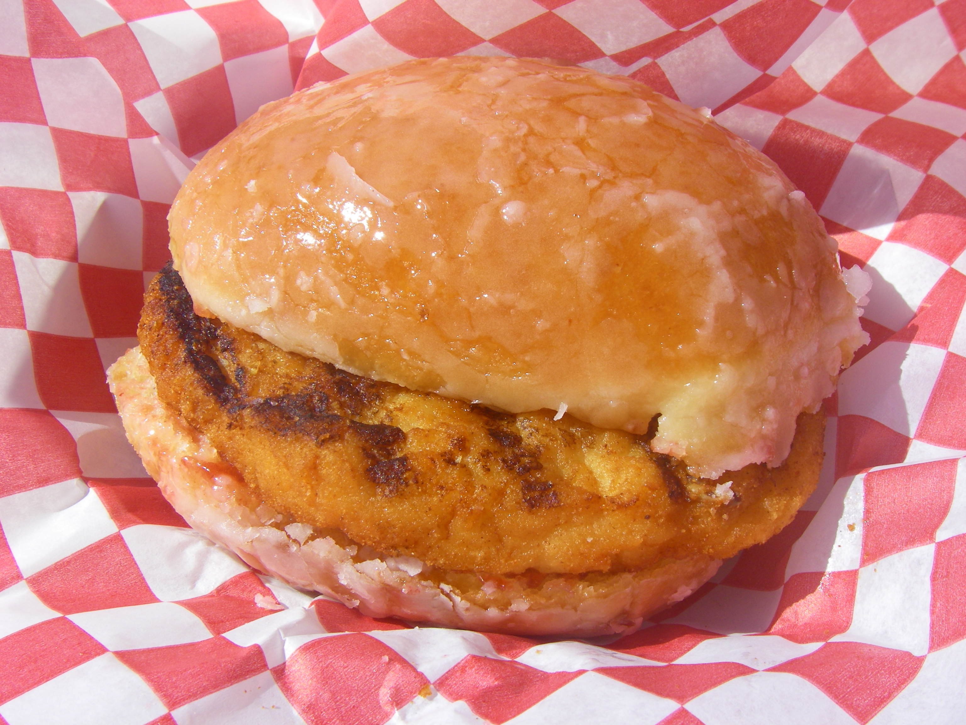 - So how was it? Well, the first bite I have to say was an explosion of...interesting... The combination of honey-cooked chicken with glazed donut and raspberry filling was definitely something new. The rest of the bites I was thinking "wtf am I eating? wtf. wtf. wtf." And I have to say, I felt pretty gross afterwards.